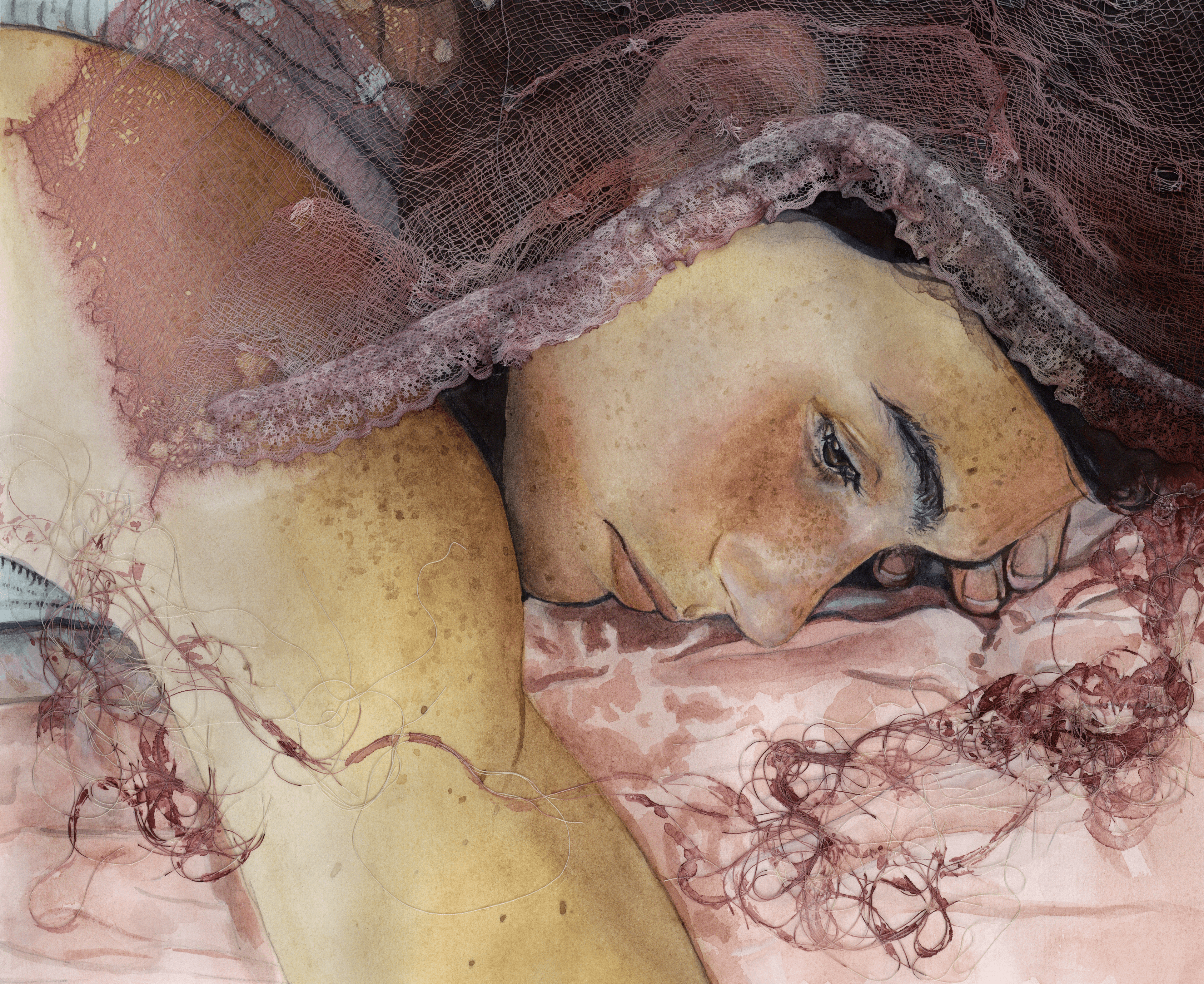 watercolour, fabric, collage, 57 x 105.5 cm, 2024